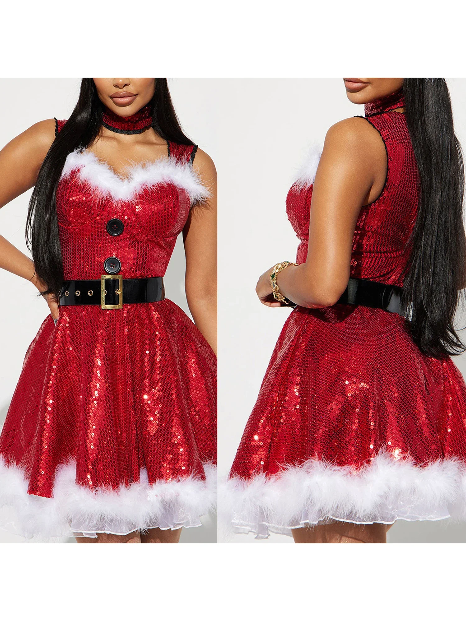 Sunfanrtnn Women Santa Costume Mrs Claus Dress Cosplay Christmas V-Neck Furry Fancy Hooded Dress Nightwear Outfits # 1 # W.