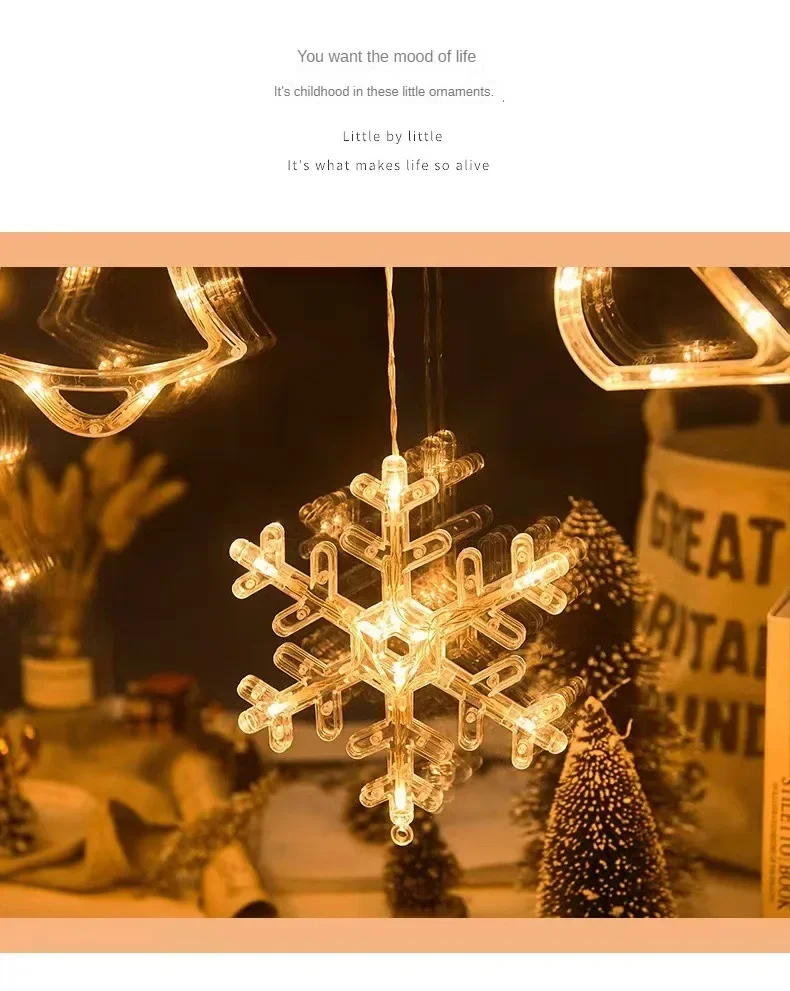 LED Christmas Suction Cup Lights Santa Claus Fawn Bell Pine Tree Star Window Wall Holiday Party Home Decoration Lighting