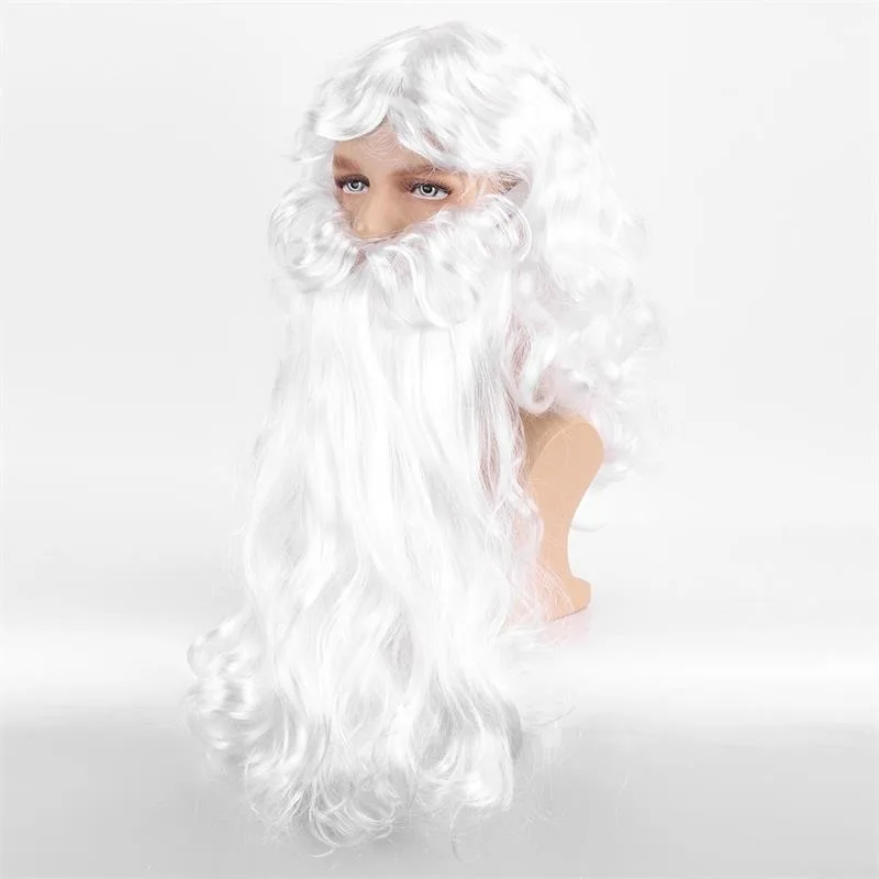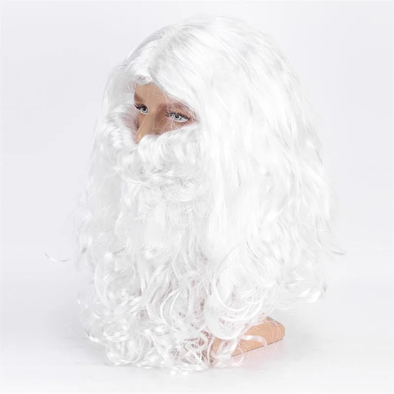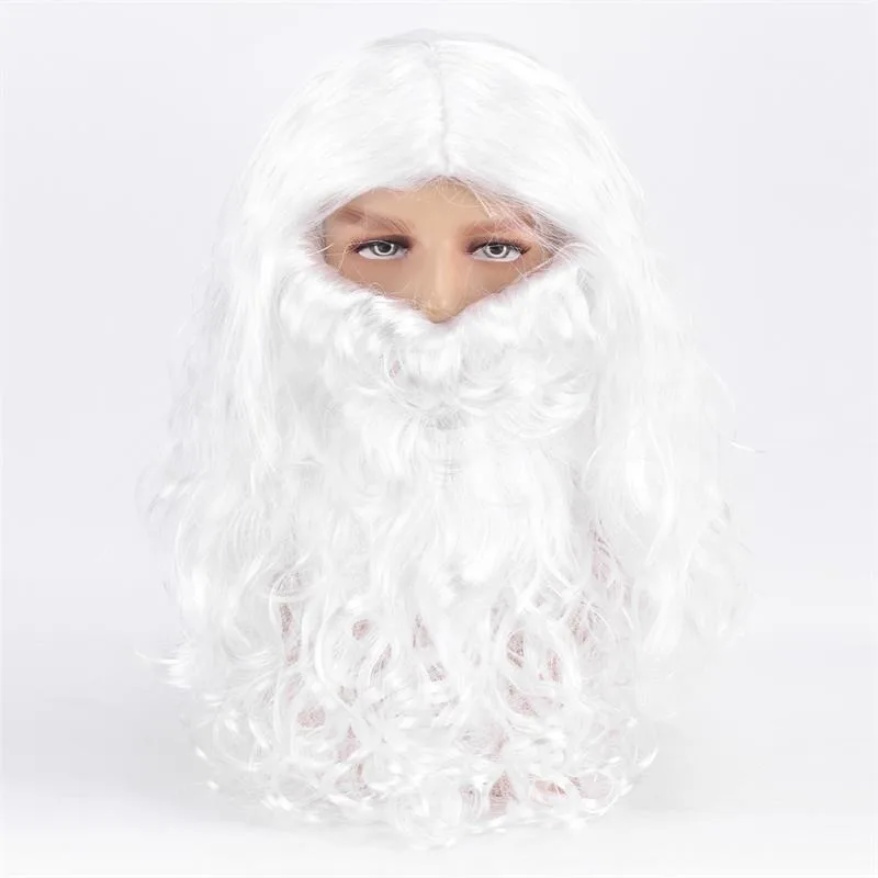 Santa Claus Wig Suit Christmas Party Play The Role of Headwear White Beard Christmas Festival Perform Accessory Long Curly Hair